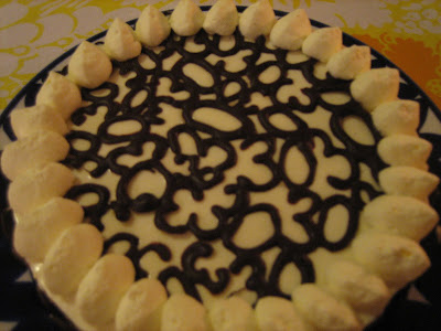 My good friend Elisa came to visit me. For these occasions I have small cakes in the freezer and also always have whipped cream and jam in the fridgerator. I have been doing so much sugarpaste covered cakes that whipped cream cake feels luxury...and it was... :D